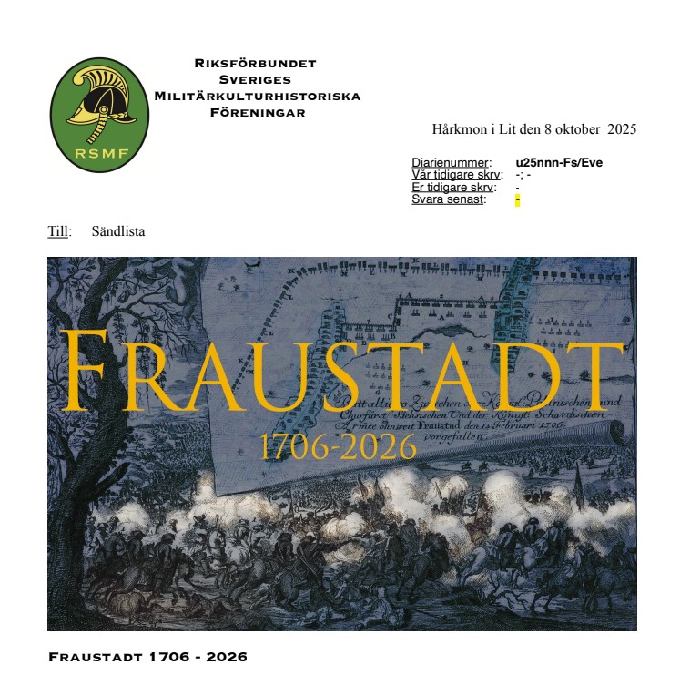 Der er kommet indbydelse til et historisk arrangement i Fraustadt (Polen)